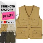 Title: Custom Quality 100% Cotton Multi-Pocket Vest | Khaki Fishing & Photography Waistcoat